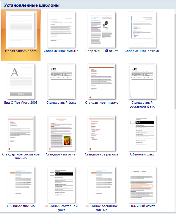 Чтобы не создавать документ с нуля, выбирайте шаблоны. Вы получите документ с готовой разметкой. Останется только изменить данные. Шаблоны на скриншоте базовые и они есть у всех пользователей Word. Вы можете скачать другие варианты, например: