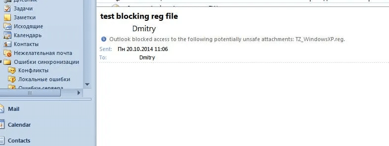 «Outlook заблокировал доступ к следующим небезопасным вложениям.»