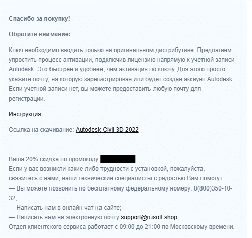 Если Вы купили продукт на Rusoft.Shop, то на указанную при покупке почту пришло письмо об успешной покупке.