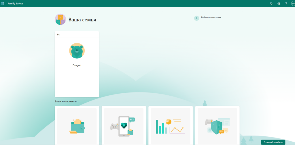 Первым делом, чтобы начать настройку учетной записи, вы должны добавить ее в приложение. Для этого кликаете на «Добавить члена семьи» и добавляете участника.