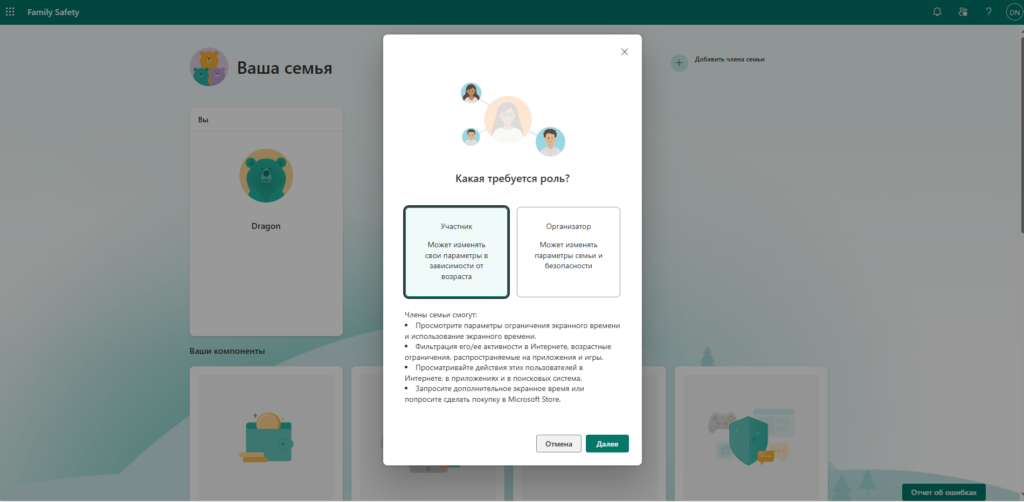 Во время настройки семейной безопасности вы можете: