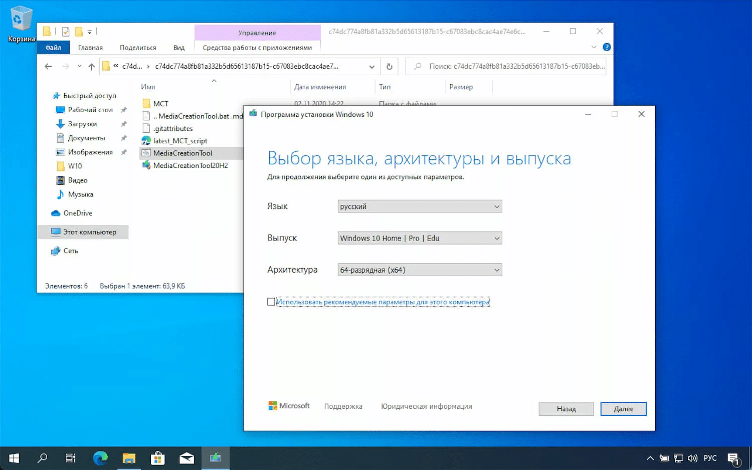 Выберите нужную версию, и программа автоматически запустит стандартный интерфейс Media Creation Tool для её загрузки.