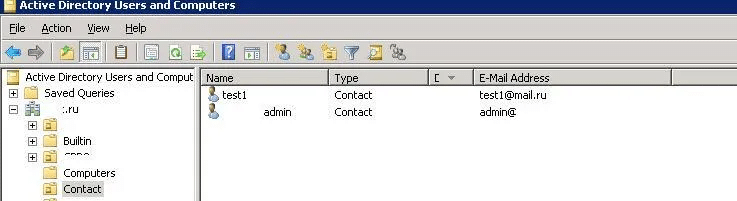Перед настройкой Outlook необходимо создать хранилище общих контактов в Active Directory. Для этого: