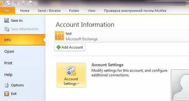 Теперь настроим Microsoft Outlook 2010 для использования общей адресной книги. Процесс аналогичен для Outlook 2007 и 2003.