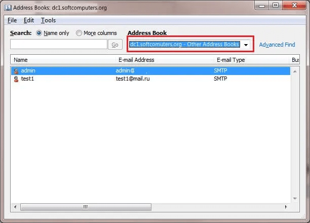 Теперь в каталоге Active Directory есть отдельный OU, содержащий все общие контакты. Следующий шаг – подключение этой базы в Outlook через LDAP.
