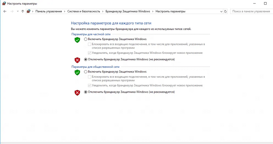 Отключите брандмауэр Windows. В Панели управления выберите Брандмауэр Защитника Windows, затем Включение и отключение брандмауэра и отключите его. После установки обязательно включите брандмауэр обратно.