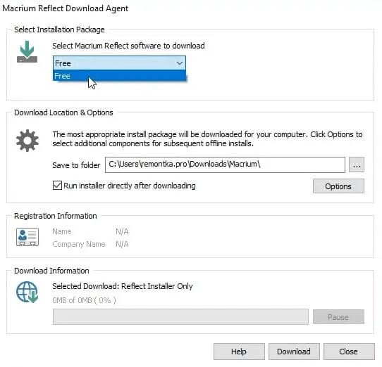 Перейдите на официальный сайт Macrium Reflect Free и скачайте бесплатную версию для домашнего использования.