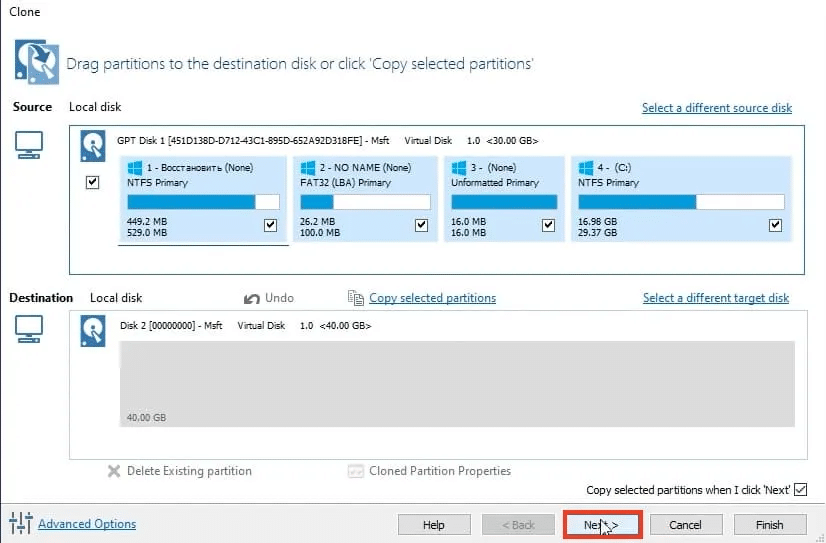 - Найдите исходный диск, с которого хотите перенести данные (чаще всего это диск C:).