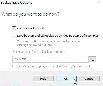 - Установите галочку «Run this backup now» и подтвердите действие кнопкой «OK».