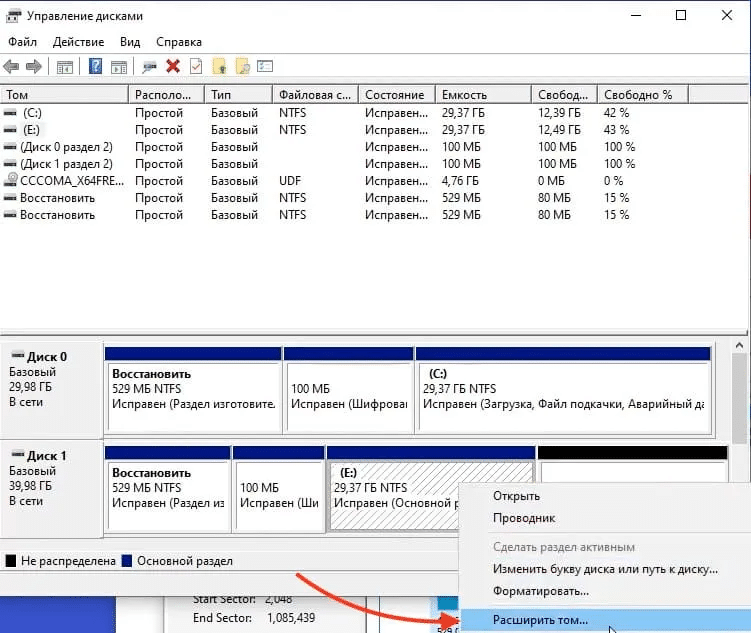 - Распределите свободное место, создав новый раздел или расширив существующий.