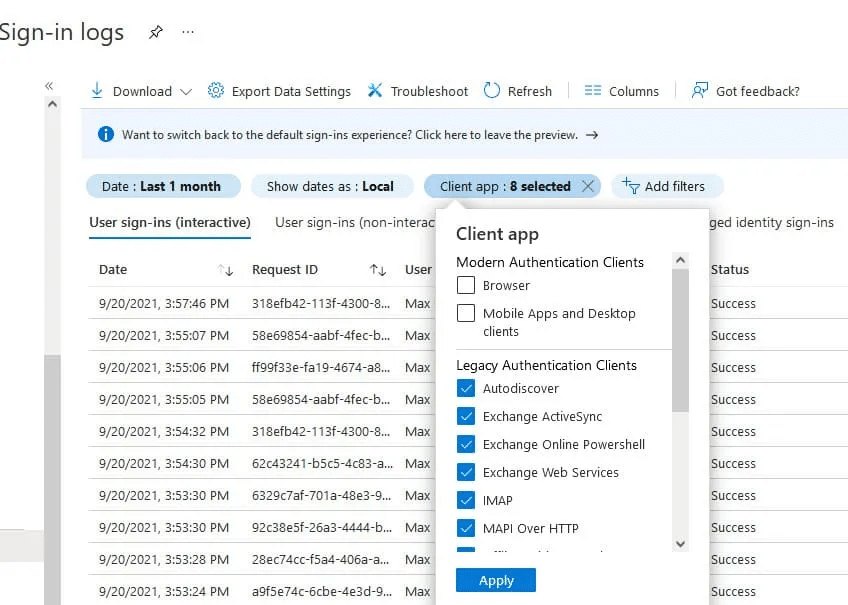 Этот анализ поможет избежать проблем с доступом у пользователей, которые еще не перешли на Modern Authentication.