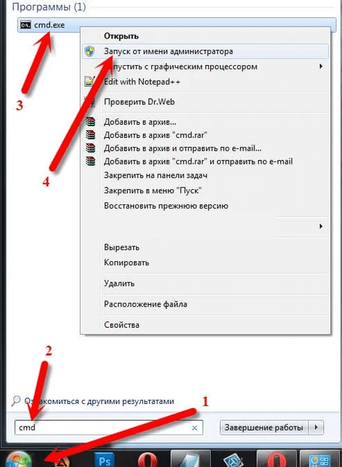 Нажмите «Пуск», введите cmd, кликните правой кнопкой на cmd.exe и выберите «Запуск от имени администратора».