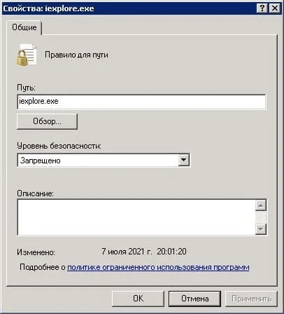 Наиболее простой способ запретить запуск Internet Explorer — воспользоваться встроенными средствами Windows, а именно «Политиками ограниченного использования программ». Этот метод может быть применён локально на сервере или с помощью доменных политик в Active Directory.